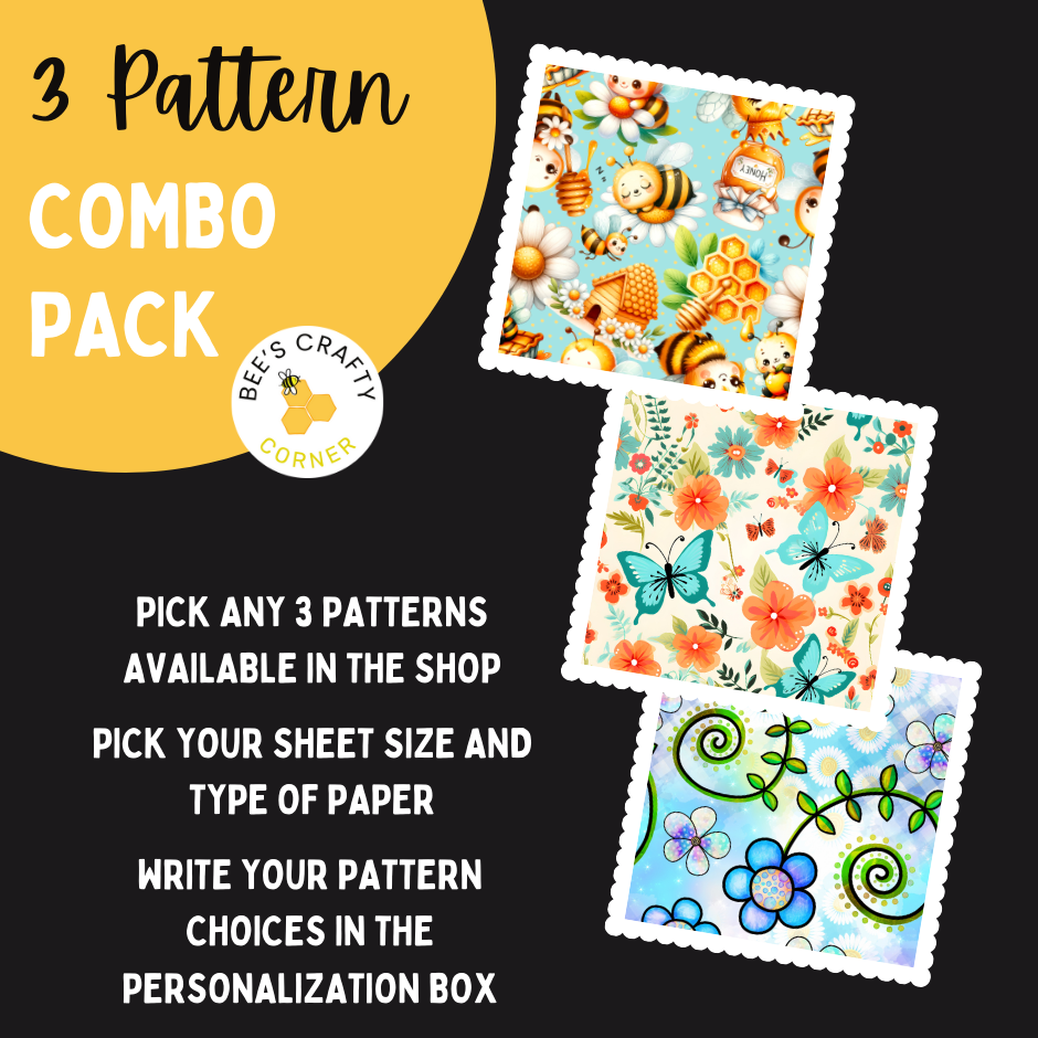 Why choose just 1 pattern when you can have 3? This combo pack listing lets you pick 3 patterns of release paper in a single size. Choose your preferred sheet size and paper type and then write your pattern choices in the personalization box. Please write the pattern names exactly as they appear in my shop.