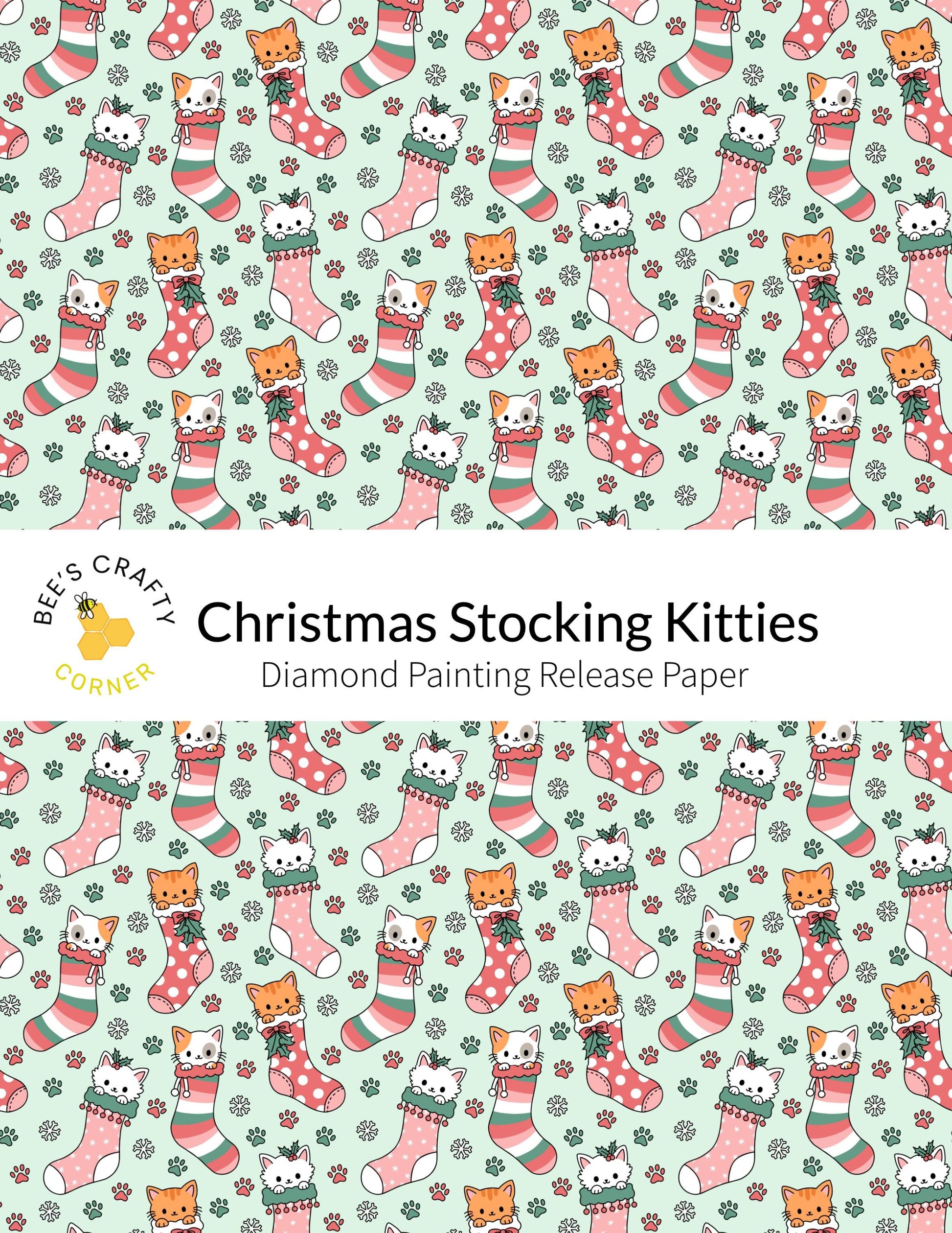 Christmas Stocking Kitties - Reusable Patterned Diamond Painting Release Paper