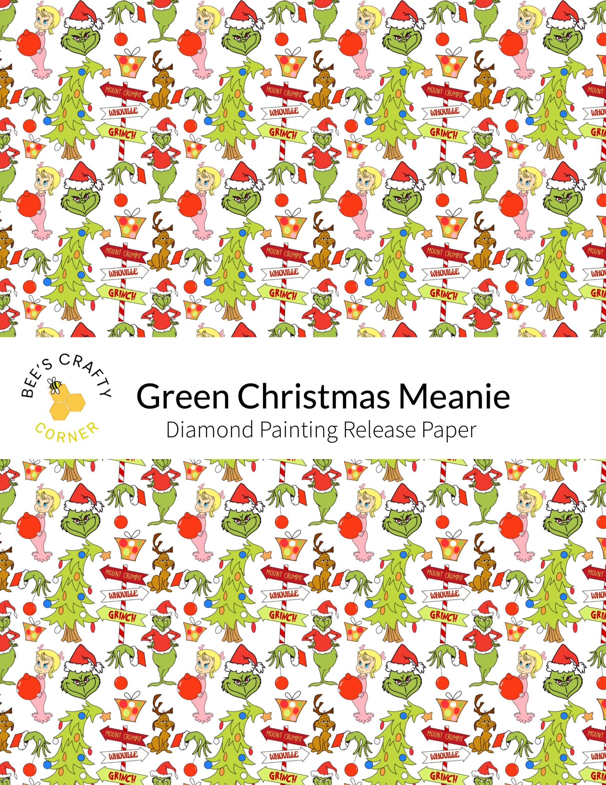 Green Christmas Meanie - Reusable Patterned Diamond Painting Release Paper